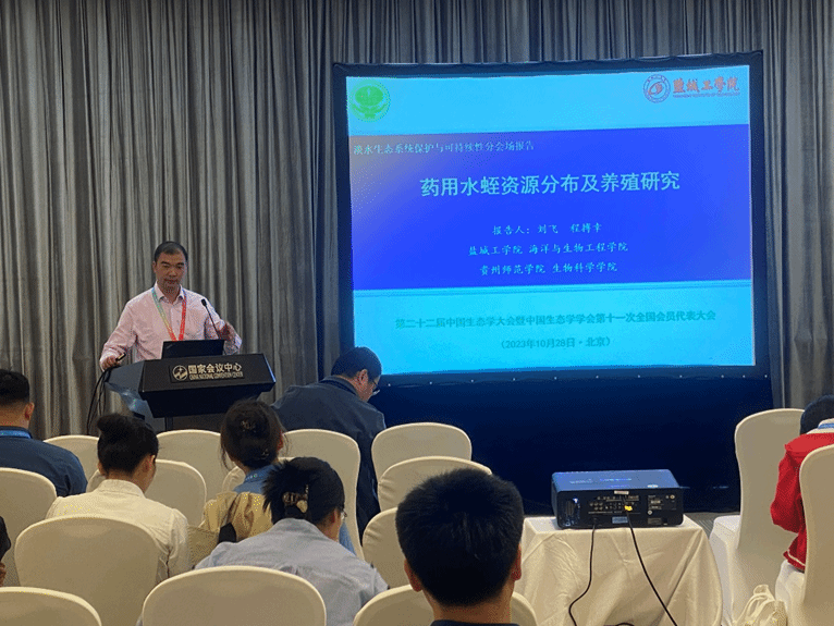 期间,刘飞教授先后在中药资源可持续发展分论坛和淡水生态系统保护与可持续性分论坛上作题为《水蛭肠道异嗜糖气单胞菌促进水蛭生长研究》和《药用水蛭资源分布及养殖研究》的专题报告,就当前药用水蛭的资源分布现状、药用水蛭品质形成机制、养殖研究进展等方面及未来发展方向等交流了自己的研究成果。