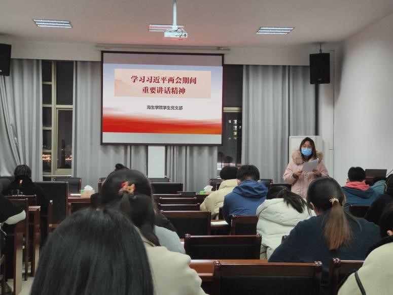 为贯彻学习两会期间重要讲话精神,3月23日晚7点,全体学生党员在英国正版365官方网站会议室进行了一节以“学习两会重要精神”的党课学习并在课后展开了关于“两会精神”的交流,学生党支部书记王珂主讲。
