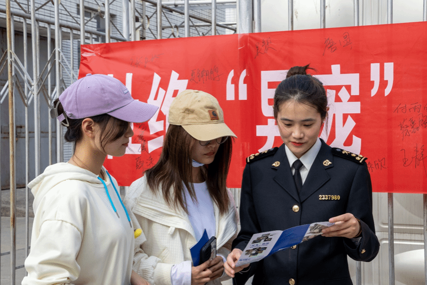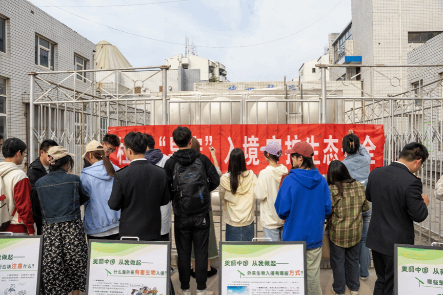 在北校区食堂的人流密集的活动现场,盐城海关和英国正版365官方网站的志愿者同学开展一系列宣传活动。活动发放卡通宣传帆布包、知识竞答等丰富多样的形式,以及生动有趣的现场互动,让盐工的学子们了解国门生物安全知识、认识常见外来入侵物种,鼓励大家一起行动起来,共筑“国门生物安全防线”。