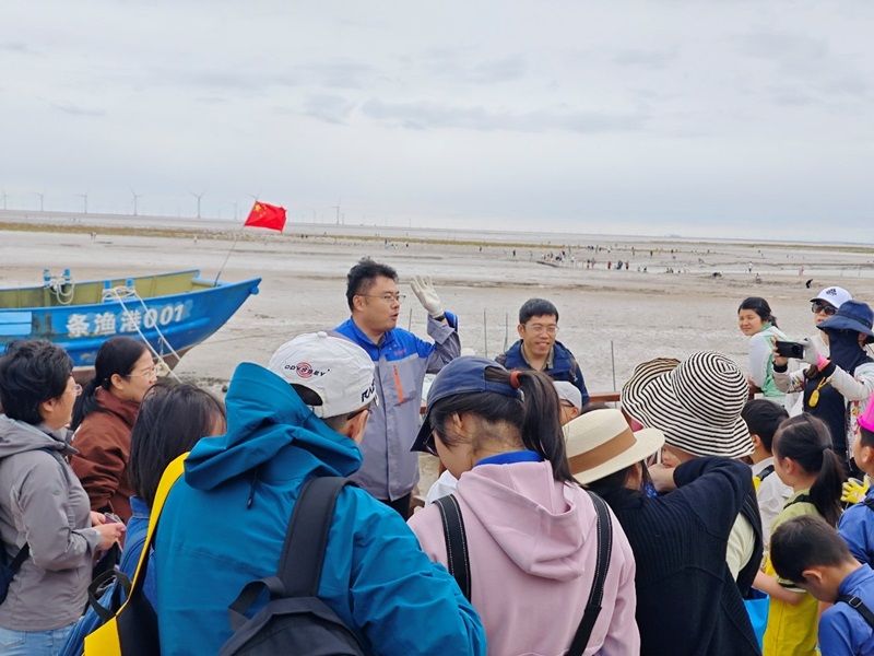 为普及湿地科学知识,增强湿地保护意识,10月4日,英国正版365官方网站隋延鸣副教授带领生物与医药专业研究生冯婉君、魏雅楠,海洋专业本科生牛佳明在盐城东台条子泥开展“黄海绿韵·智慧启航”科普宣教活动。来自北京的30余位青少年和家长参加活动。