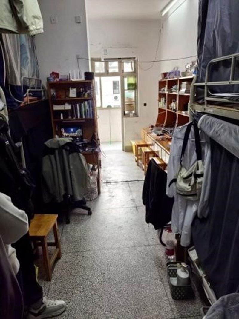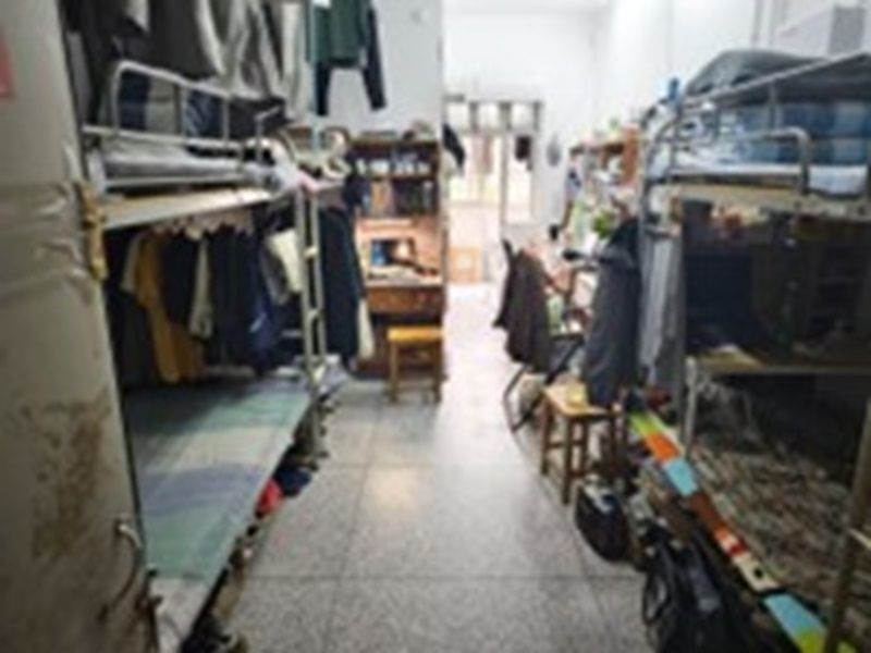 (工作人员正在进行寝室卫生安全检查)