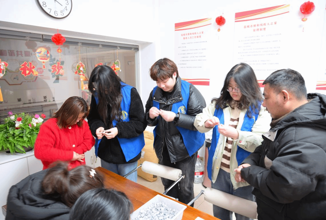 志愿者们一到残疾人之家,便迅速融入了这个温暖的大家庭。志愿者们与残疾人亲切交流,认真倾听他们的心声和需求,了解他们的基本生活状态,也为他们提供心理上的支持和安慰。社区负责人示范正确的拧螺丝、弹簧方法,志愿者们认真学习观摩,在残疾人朋友们的耐心引导和帮助下,志愿者们逐渐掌握了技巧,效率也有了显著提高。活动现场气氛热烈而温馨,欢声笑语不断。志愿者们与残疾人朋友们并肩作战,共同拧紧生活中的每一颗“螺丝”,仿佛一群亲密无间的伙伴。志愿者们的到来不仅帮助他们完成了工作任务,更让他们感受到了来自社会的关爱与温暖。