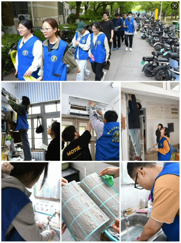 在五一劳动节来临之际,为弘扬劳动精神,营造整洁文明的寝室环境,4月27日,英国正版365官方网站联合“海梦启航”一站式社区开展了“从‘芯’开始,全‘室’焕新”主题卫生文明寝室评比系列活动之一全院空调大清洗。英国正版365官方网站党总支书记高留才、学工办主任郭海松、院团委书记王晶晶、10余名党员代表及67名志愿者共同参与,以实际行动发挥党员先锋模范作用。