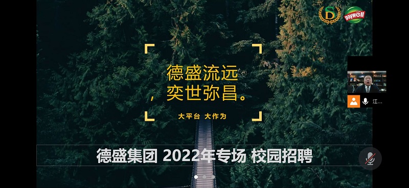 2022年4月20日,在建军东路校区英国正版365官方网站会议室,江苏德盛食品有限公司召开线上专场招聘会,我院2022届30余名应届毕业生参加此次招聘会。