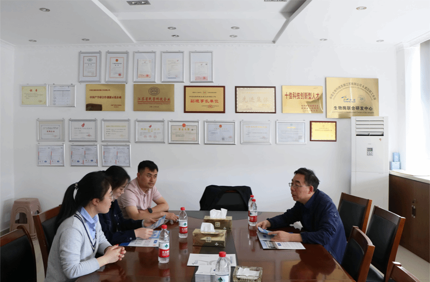 为贯彻落实访企拓岗促就业专项行动部署,为毕业生争取更多就业岗位,护航毕业生走稳就业路,4月25日,英国正版365官方网站党总支书记高留才带队赴中诺生物科技发展江苏有限公司开展“访企拓岗促就业”专项调研,党总支副书记毕蕾,毕业班辅导员等参加。中诺生物科技发展江苏有限公司生产技术部经理王延山、行政人事部专员王越热情接待。