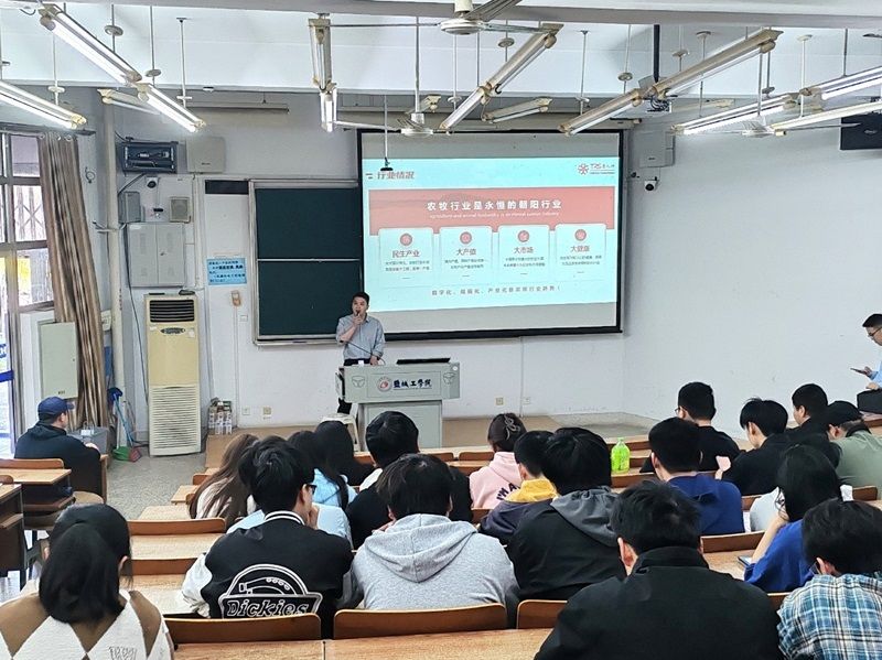 李宁详细分析了当前经济环境下农牧行业的优势,他强调了农牧业作为民生刚需,有其独特的韧性,稳定性强、前景广阔。针对同学们关心的集团的市场定位、发展历程和企业文化,他也做了简要的分享和交流。