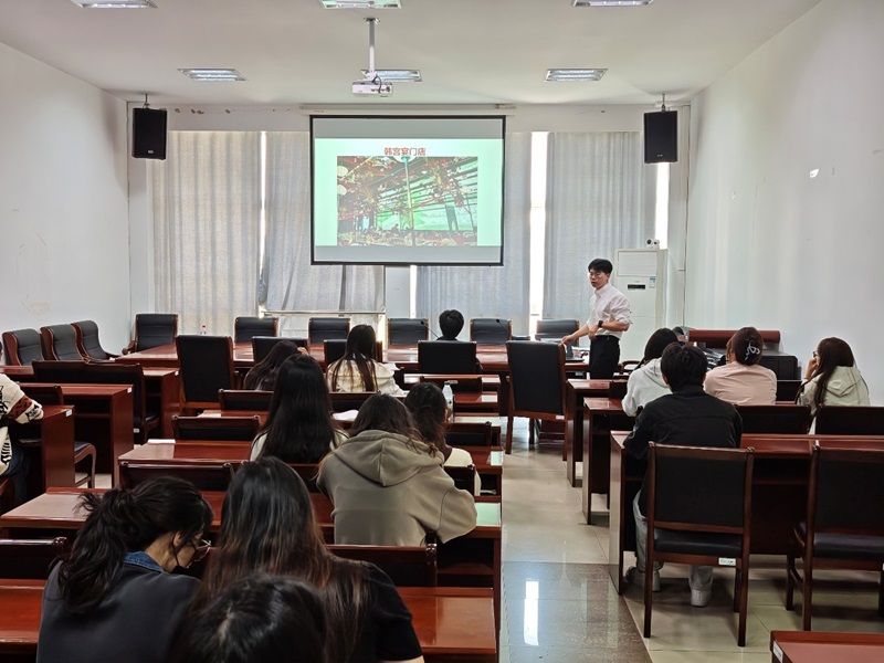 宣讲会上,公司代表借助PPT详细介绍企业概况。从2011年成立后的多个发展阶段,到旗下丰富的品牌矩阵,如胖哥家、南北小馆、又起楼等,还提及在全国100多个城市拥有450家直营门店及无锡占地20000平方米的现代化中央厨房、冷链物流体系等,让同学们对韩宴餐饮的实力与规模有了清晰认知。