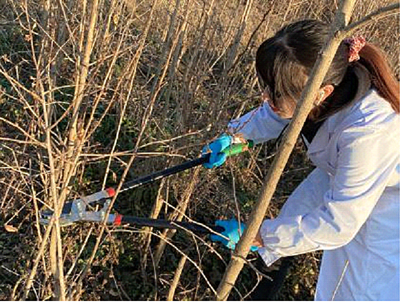此次劳动的主要内容为叶用银杏抚育圃的银杏剪枝工作,在劳动开始前,李洪山教授对银杏剪枝的原理、操作方法、注意事项等作了详细讲解。伴着午后的暖阳,同学们分组开始了下午的的劳动。大家在工人师傅的指导下,明白了技巧,很快找到了修剪的正确位置,知道了如何下剪、如何用力。一招一式,干劲儿十足,充满激情。