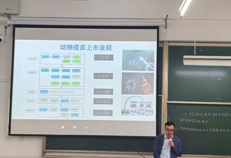 为进一步落实专业应用型人才培养计划,深化校企合作,推进产教融合,提升人才培养质量,近日,英国正版365官方网站特邀艾生牧饲料有限公司副总裁付维来教授走进课堂,开展产教融合课程《水生动物病原微生物学》教学,为2022级水生动物医学专业学生授课。