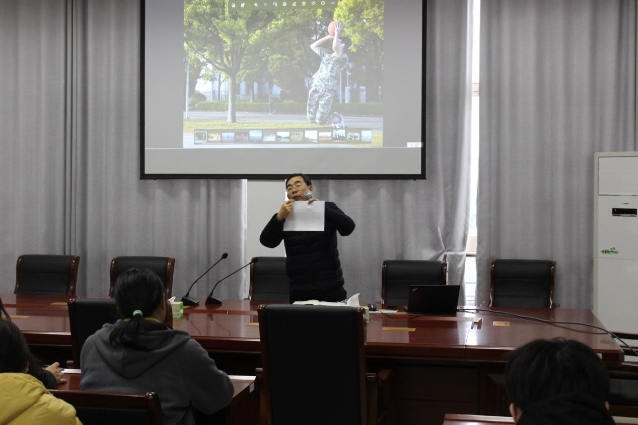 高书记首先介绍了本次培训会的目的和意义。以“冬至饺子宴”一稿为例,提出对新闻稿、即时消息一类文章的写作要求和方法。他指出这类文章整体篇幅不宜过长,内容应包含写作的“5w”要素,可采用倒置的手法,将重要内容置上。他强调,新闻写作着重一个“真”字,要从生活中搜寻,要描写地生动、鲜活、有感染力。高书记还讲述了摄影的手法与技巧,高书记结合网上和同学们自己拍的照片一一指出了优缺点。他强调摄影要注重虚实结合、色彩丰富、明暗对比。他从顺光、逆光、侧光、脚光等方面进行具体说明“色时光的艺术”,同时细致讲述构图讲究三分法,“黄金分割线”等方法。最后,高书记号召同学们下次培训带上自己的作品现场参与讨论,一起进步。