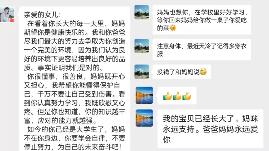 这封家书,是学生们情感的烙印,也是生活中的闪光点。以前车马慢,书信也很慢,在慢慢的等待中寄予着写信人与收信人双倍的期待。这次,英国正版365官方网站学子与家乡的亲人尺素传情,大段大段的文字于心中斟酌揣摩,许多平时口头无法表述的感情伴随写信时内心的波澜起伏落在笔尖。B海洋213王锦茵同学写信时脸上泛起了幸福的微笑,她说:“平时是不可能张口对父母表达爱意的,这一次痛痛快快地写在了信里。”B食品211彭冰洁也表示:“我是家中最小的孩子,写这样的一封家书,能给家中疼爱我的父母寄去爱和温暖,我很期待看到他们收到信的表情。”