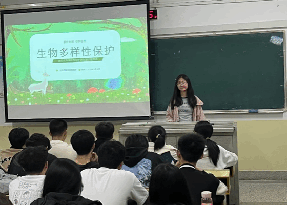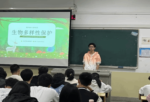 同学们积极开展专题宣讲、观看主题影片、户外团建等多种形式来迎接国际生物多样性日。22级生物工程系团支部开展了 “维护生物多样性,共建生命共同体”专题宣讲,围绕生物多样性的内涵、意义、人类与生态环境的关系及生态文明建设四大部分进行了绘声绘色的描述。生物221班徐葛嘉表示:“我们学生尊重自然、顺应自然、保护自然,探索人与自然和谐共生之路,促进社会发展与生态保护协调统一,是建设谐美丽的社会主义现代化强国、实现中华民族伟大复兴中国梦的内在要求和美好愿景!”
