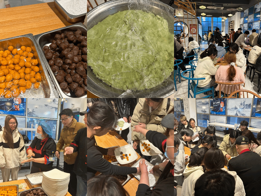 包青团,这一传统的江南小吃,以其独特的制作工艺和香甜可口的口感而备受人们喜爱。在活动现场,师傅耐心细致地指导同学们如何揉面、如何调馅、如何包裹,让大家在亲手制作的过程中感受到了劳动的快乐。活动现场秩序井然,氛围热烈。参与活动的同学们热情高涨,在厨师的带领下对包青团表现出极大的热情。同学们认真学习了青团的制作方法和技巧,每个人对制作过程都抱有极大的耐心与热忱。青团经过蒸煮显现出诱人的青绿色,经过亲手制作,学生们不仅在制作过程中感受劳动的快乐,也加深了对于传统节气与民俗的理解。更得知食物的来之不易。刘雅楠同学向大家了清明节的由来及习俗,以及青团作为承载清明民俗文化的载体自古以来发挥的作用和价值。