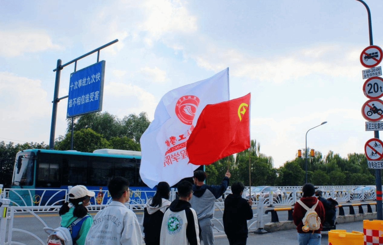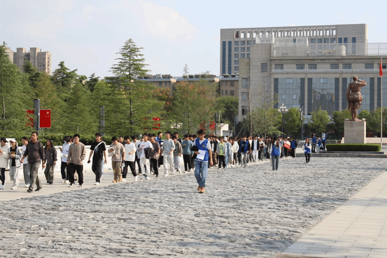 活动尚未拉开帷幕,英国正版365官方网站新生10个班级330多人集中在北区图书馆门口,井然列队,新生们胸前佩戴着熠熠生辉的校徽,个个神采奕奕,满怀期待地准备踏上这场别开生面的主题团课之旅。在秋日暖阳的照耀下,团委书记王晶晶、辅导员霍福松老师携手各班级班助,带领着同学们徒步前往新四军纪念馆。