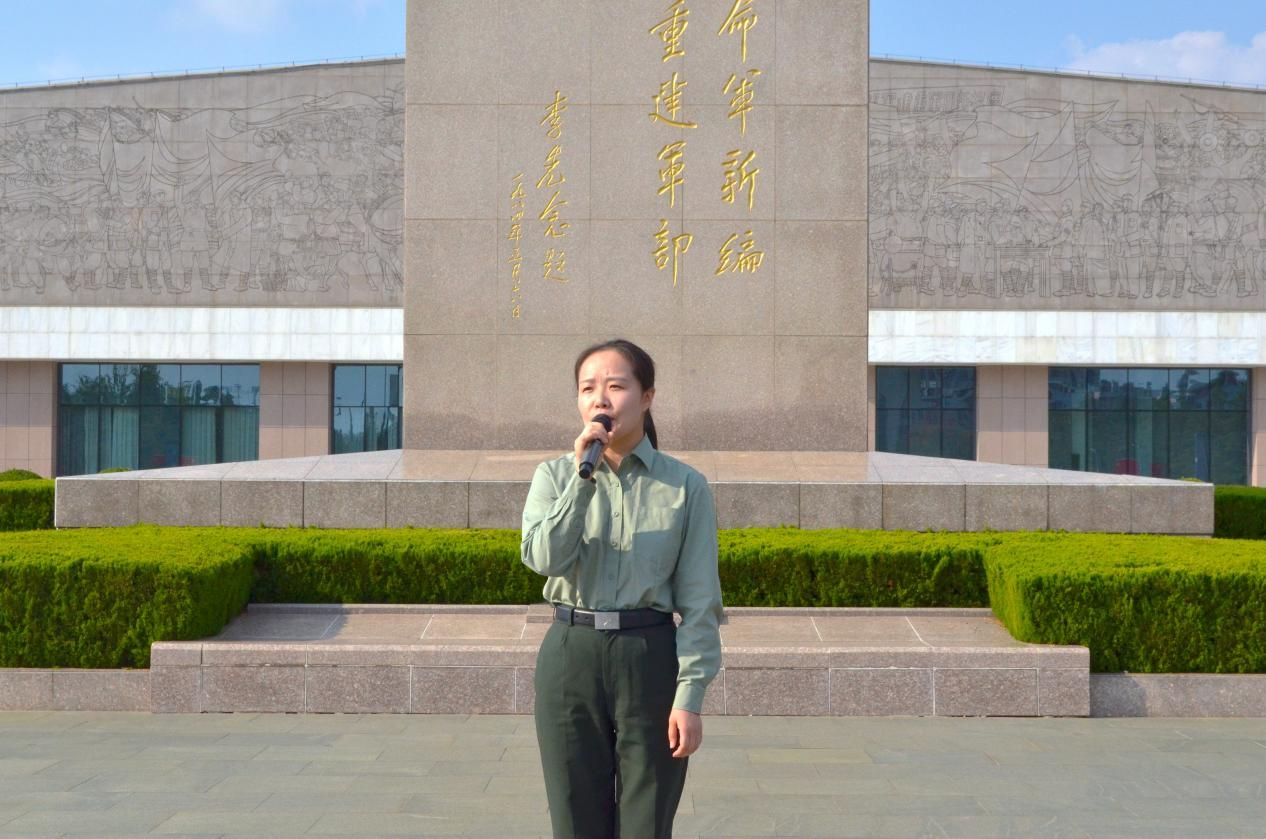 在讲解结束后,同学们在纪念碑下排列整齐,举行了入团宣誓。“吃苦在前,享受再后,为共产主义事业而奋斗”,团员们右手握拳,一声声铿锵有力宣读誓词的声音飘荡在纪念的空中。
