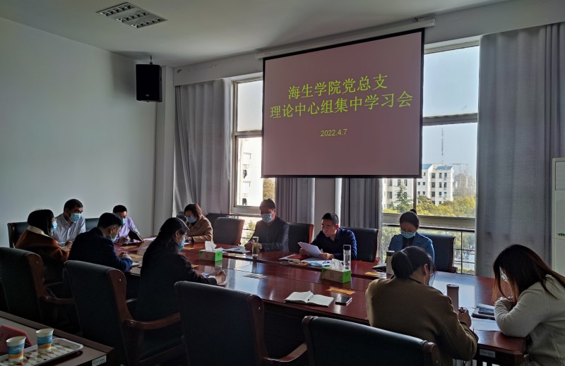4月7日下午,海生党总支在学院会议室召开党总支理论中心组集体研讨会,党总支书记高留才主持会议,校党委第三巡学旁听组组长张雷、成员束安娣到会指导,学院党总支理论学习中心组成员参加。