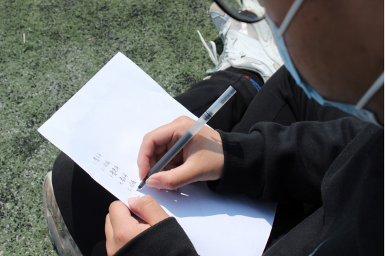 同学们在操场上站成一排,每经历一个重要瞬间就向前走一步,一直走到象征着死亡的终点线。活动后,大家回到教室开展“以爱之名、心怀感恩”的主题分享。B海洋202的陈诗豪同学想起了拉扯自己长大的爷爷。他说:“时光一直在流逝,我能够在今天在高考中挺过,从当选为学生干部,从一个人的做事态度、为人品格,一步一步做成为实现的志向都离不开我的爷爷。”爷爷参与了他的全部童年,带给他儿童时期的许多快乐。时光荏苒,思念犹深。B生物201的许文艳同学说:“或许死后会化作天空的云、山间的风,相爱的人们依然会互相守护。生命转瞬即逝,希望能有多点时间去陪伴亲人。”