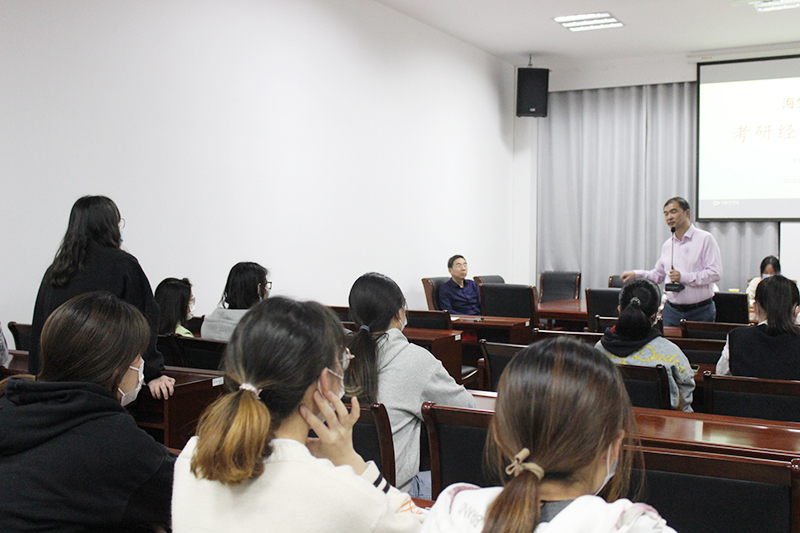 刘飞以自己考研、考博的切身经历,强调考研深造的意义,比较了“学硕”和“专硕”的特点,工学、农学、理学等学科的不同点,鼓励同学们立志高远、脚踏实地、认真备考。