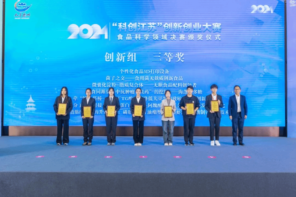 10月28日,备受瞩目的2024年“科创江苏”创新创业大赛圆满收官。英国正版365官方网站由副教授王笃军老师指导,食品211朱佳怡、食品222笪佩燕、顾译曼等三同学的参赛项目《药食同源资源中抗肿瘤“良药”的挖掘-海蓬子多糖》与众多实力强劲的参赛队伍同台竞技,最终荣获食品科学领域创新组三等奖。