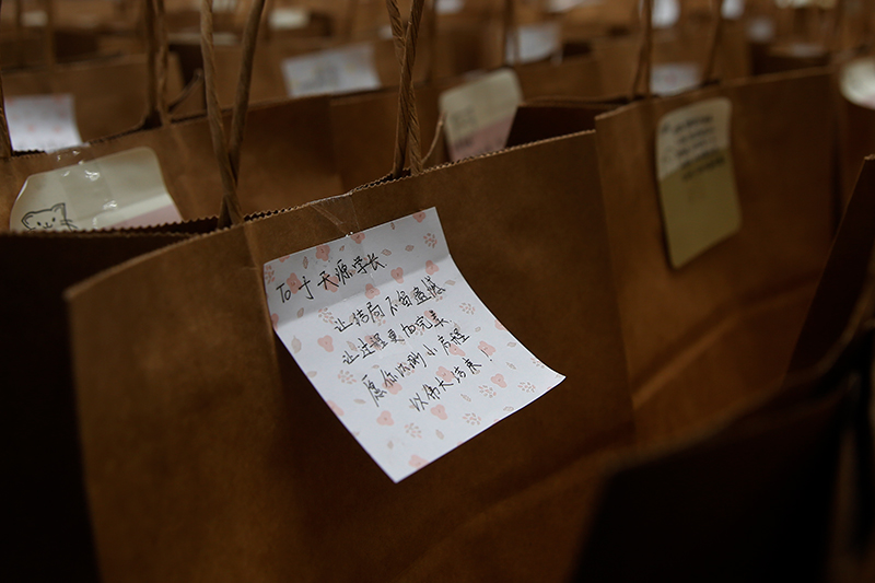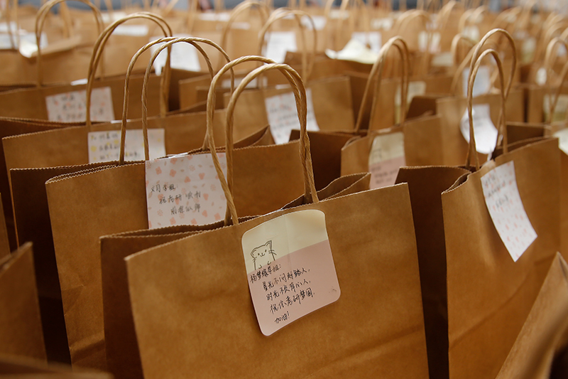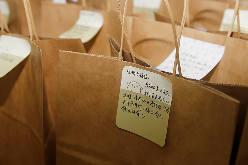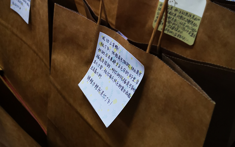 “忧愁是可微的,快乐是可积的,在未来趋于正无穷的日子里,幸福是连续的,对你的祝福是可导的且大于零,祝你每天快乐的复合函数总是最大的。”一句句祝福,一颗颗爱心,这是来自大一学弟学妹们对210名即将走上考场的大四考研的学长学姐们手写的祝福。