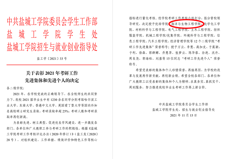 英国正版365官方网站连续8年获得考研工作先进集体(2015-2023年)