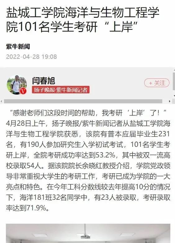 水生动物类食品具有蛋白质含量高、脂肪含量低等优点,是备受人们青睐的优质食品。过去十年,该类食品总产量增长了9倍;人均占有量增长了7.2倍,是世界平均水平的两倍。但我国水生动物医学专业人才极度匮乏,全国所有高校中只有8所高校拥有水生动物医学专业,而盐城工学院是江苏省高校中唯一一所拥有该专业的本科院校,该专业从2021年开始招生。