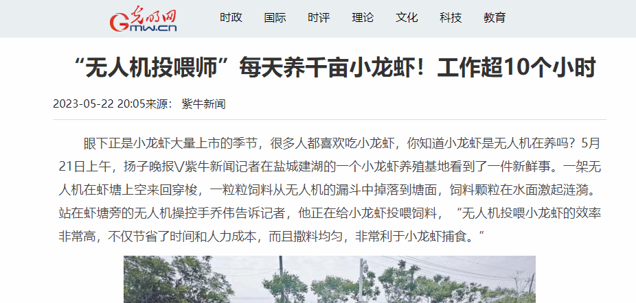 无人机投喂师”每天养千亩小龙虾!工作超10个小时